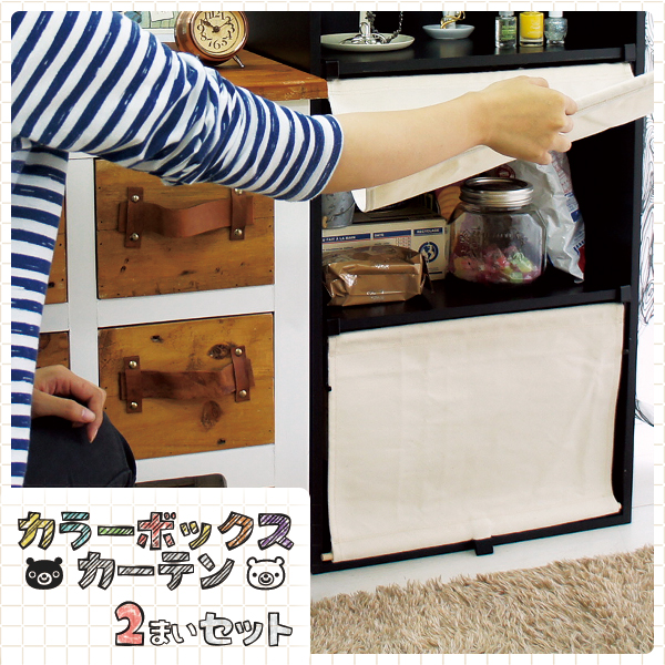 取り付けも取り外しも簡単なカラーボックスカーテンの2枚セットです。