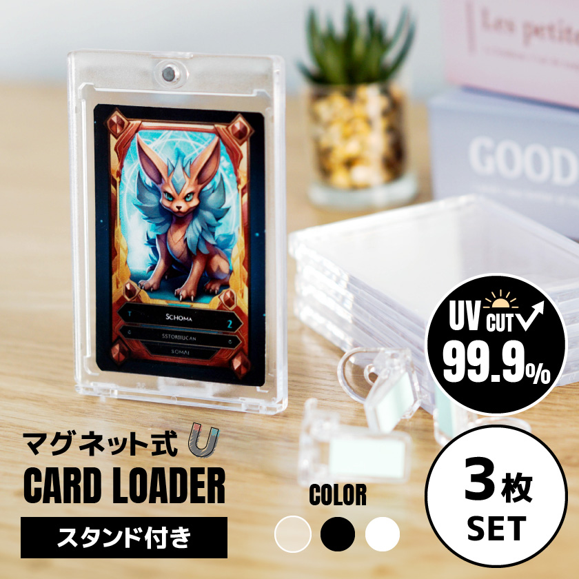 カードローダー マグネットカードローダー トレーディングカードケース トレカケース トップローダー スタンド付き 3個セット 3個SET 3枚セット スリーブ uv uvカット 紫外線カット UVカット 保護 鑑賞 ディスプレイ コレクション ポケカ 遊戯王 ワンピ デュエマ カード ケース