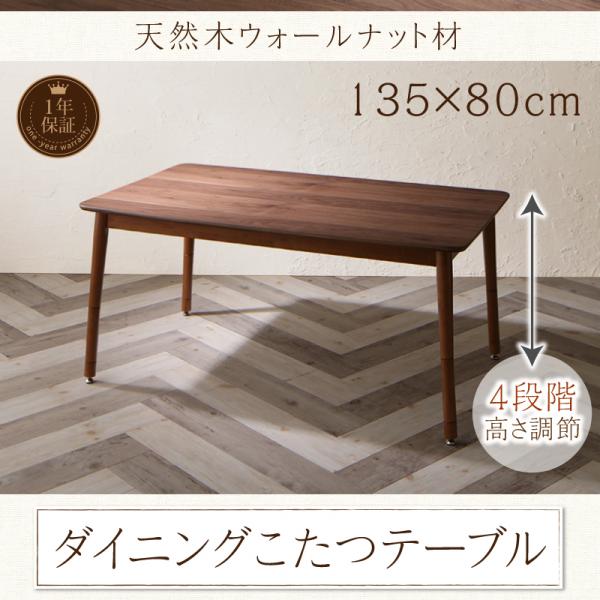 ウォールナットの高級感 ダイニングこたつテーブル W135 継脚 おしゃれ 天然木 ウォルナット ハイタイプこたつ 高さ調節 4段階