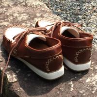このインディアン・モカシンは、ネイティブ・アメリカンの素朴なモカシンを原型に、現代の生活様式にあった仕様に改良された個性的な履物です。