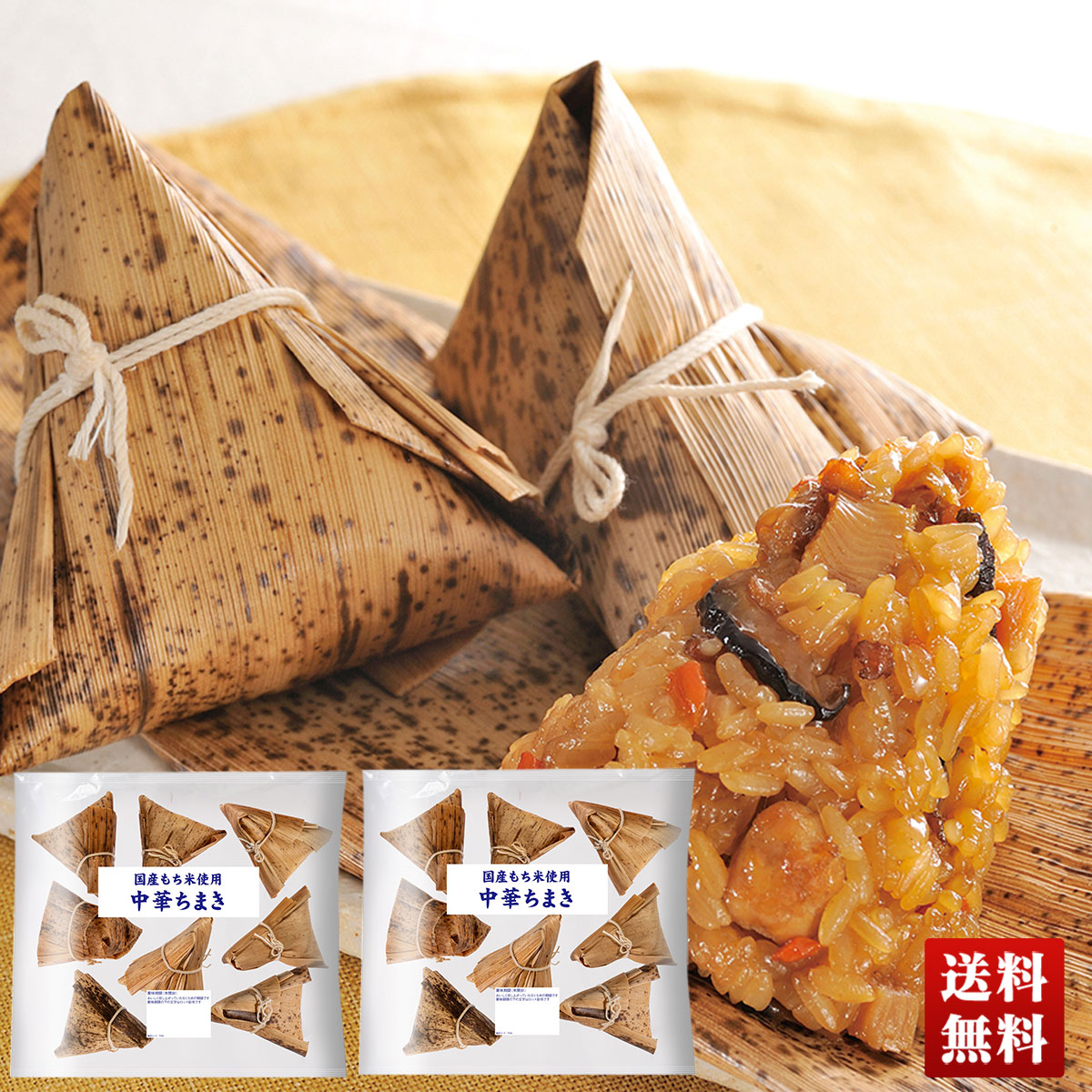 | 商品特徴 | 国産もち米を使用した鶏肉、しいたけ、たけのこ、玉ねぎ、にんじんが入った中華ちまきです。竹皮の香りが食欲をそそります。電子レンジ調理もOKです。 |
