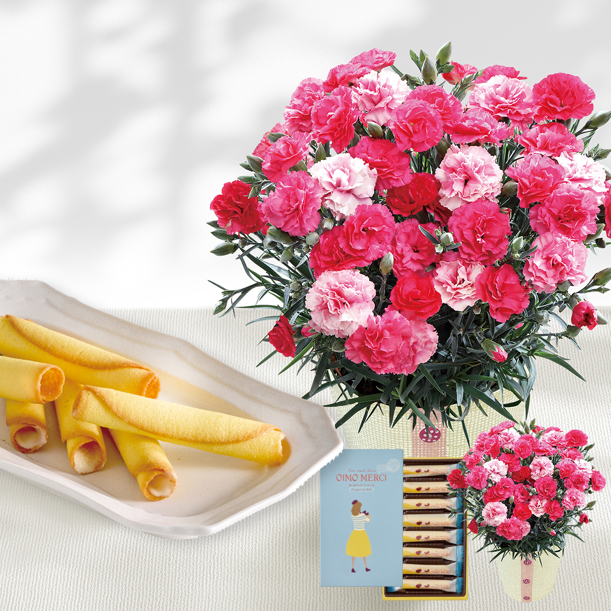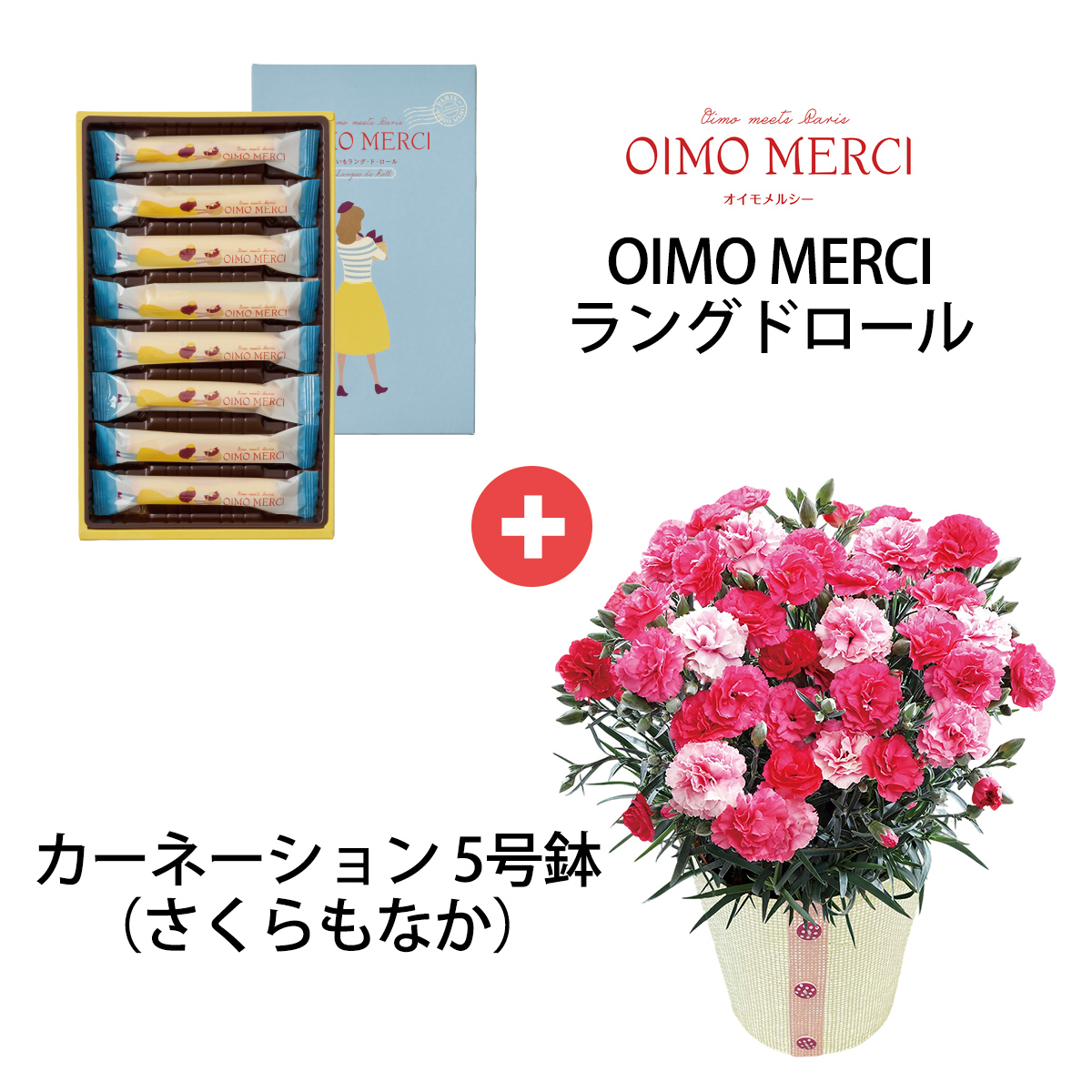 早割 母の日 プレゼント 2026 母の日ギフト 花 ギフト 生花 鉢植え メッセージカード カーネーション ( さくらもなか )と OIMO MERCI ラングドロール C40-1