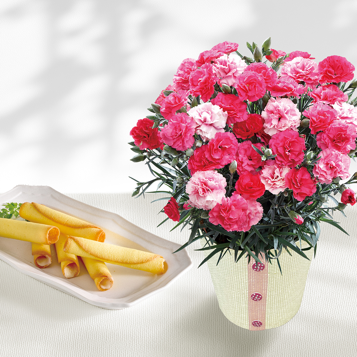 ●内容量:カーネーション5号鉢、バスケット、お手入れのしおり、おいもラングドロール×8 商品サイズ:幅約15cm×高さ約30cm ●賞味期限:製造後180日 ●配送地域:離島不可 ●包装形態:包装不可 ●配送方法:常温 ●運送便:ヤマト便 ●型番:C40-1 ●商品番号:81004 ●JAN:4550767068776 ●アレルゲン:乳、小麦、卵、大豆