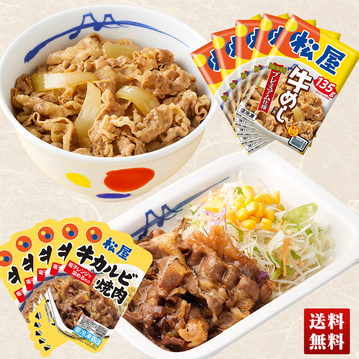 「 松屋 」 牛カルビ 焼肉セット 牛めしの具 牛カルビ 牛めし 牛丼 国産牛肉 100% 詰合せ グルメ セット 贈り物 送料無料 ギフト プレゼント GM5GK5-M