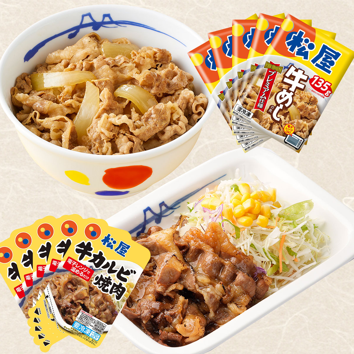 | 内容量 | 牛めしの具135g・牛カルビ焼肉60g×各5 |