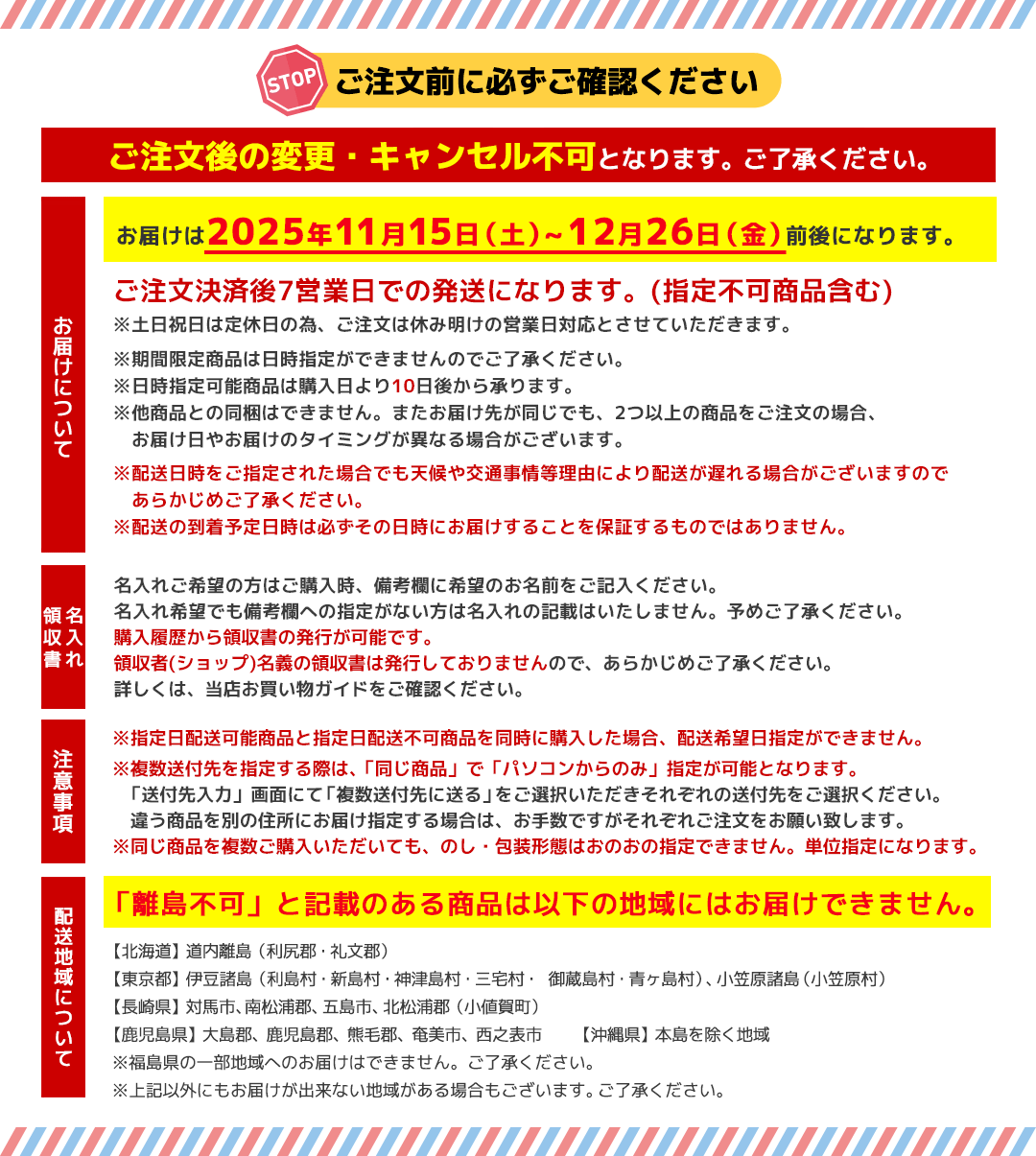 | 配送方法 | 常温 | 宅配業者 | ヤマト便 |