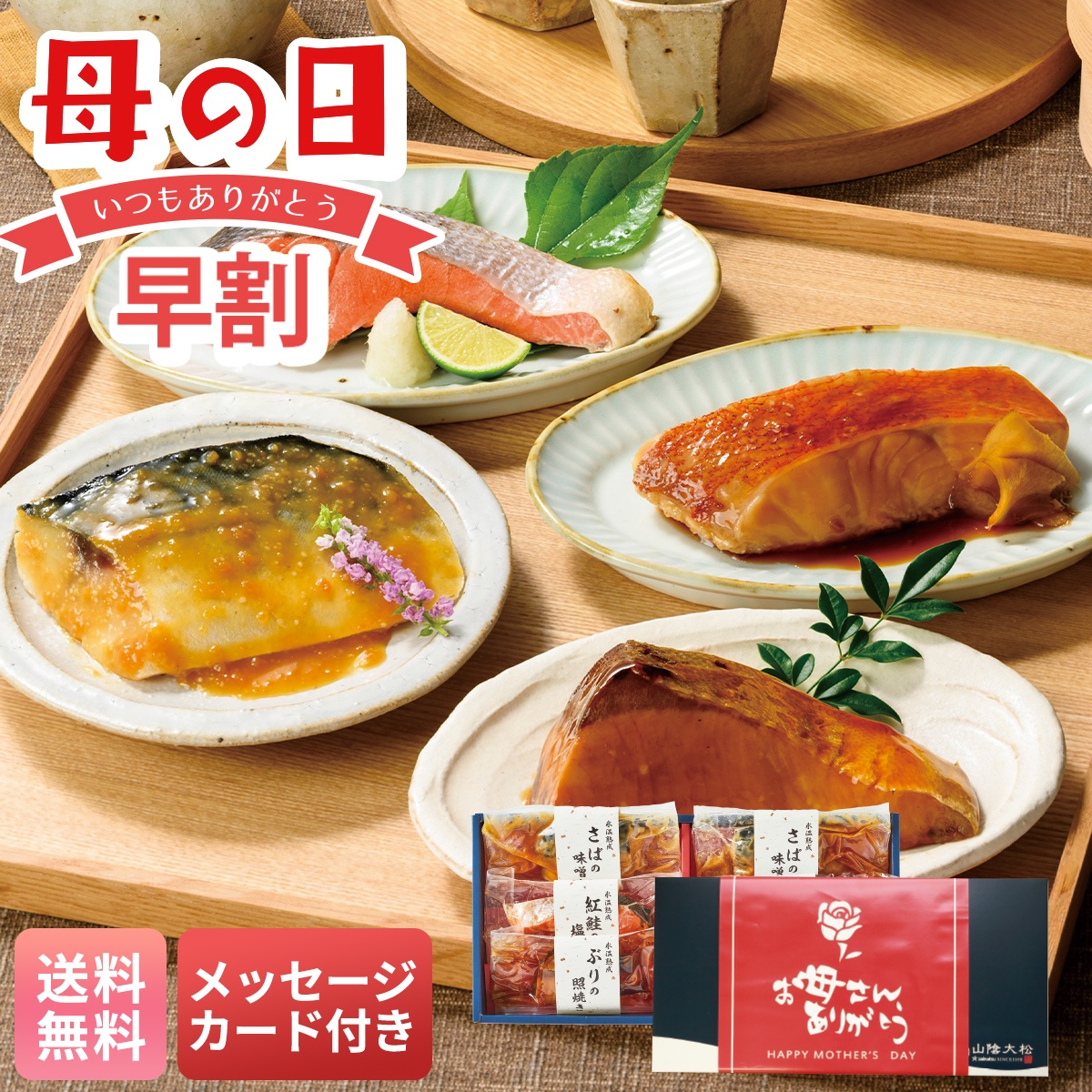 早割 母の日 プレゼント 2026 母の日ギフト グルメ 70代 60代 メッセージカード 氷温熟成 煮魚 ・ 焼魚ギフト さばの味噌煮 ぶりの照焼き 紅鮭の塩焼き NYG-6