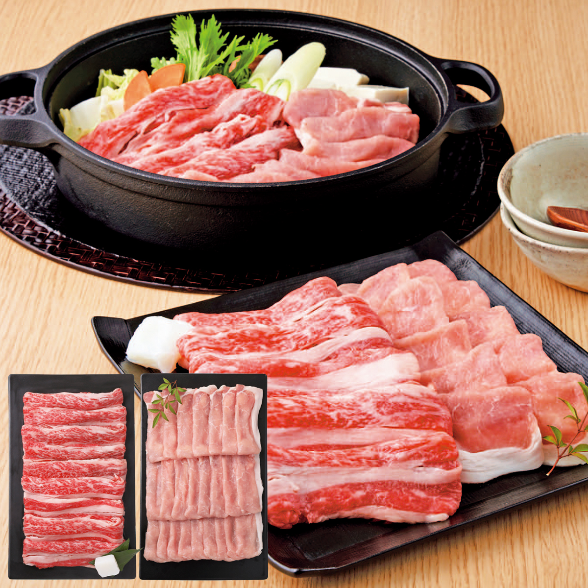 冬ギフト プレゼント送料無料 国産牛 国産豚 すき焼き用 牛バラ 豚ロース 各500g 国産 牛肉 豚肉 すき焼き すきやき 精肉 お肉 お歳暮 Y8-14