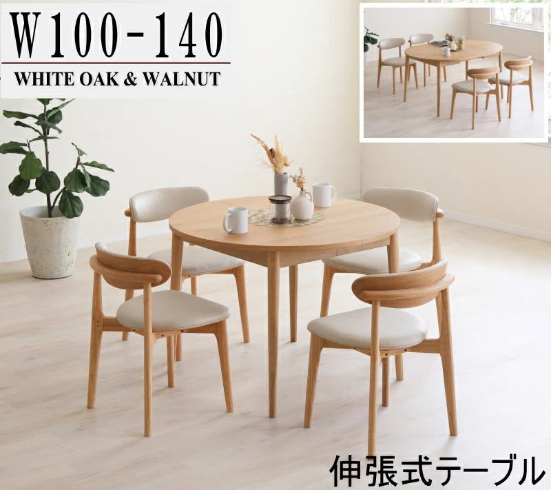 仕様:かんたん操作で天板が拡張できるダイニングセットです