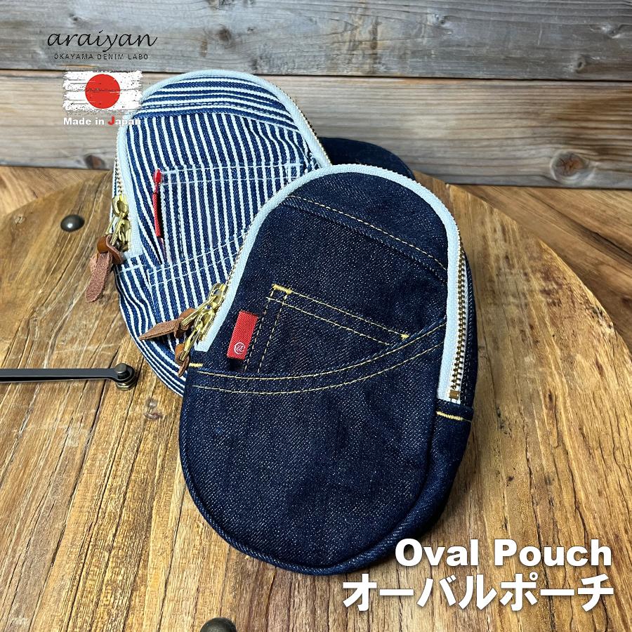 【araiyan】 アライヤン オーバルポーチ デニムポーチ マルチポーチ ウエストポーチ Dカン付き 日本製 岡山デニム ラボ コットン100% AF17002 区分N