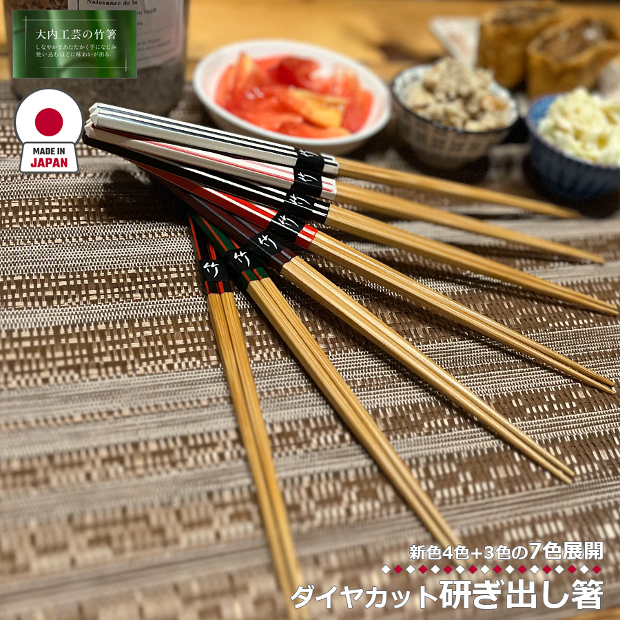 大内工芸 日本製 ダイヤカット研出し箸 極細 細い 細身 先細 おはし 箸 竹製 竹箸 はし カトラリー 国産 職人 手造り 持ちやすい 食事 食卓 H413 区分N