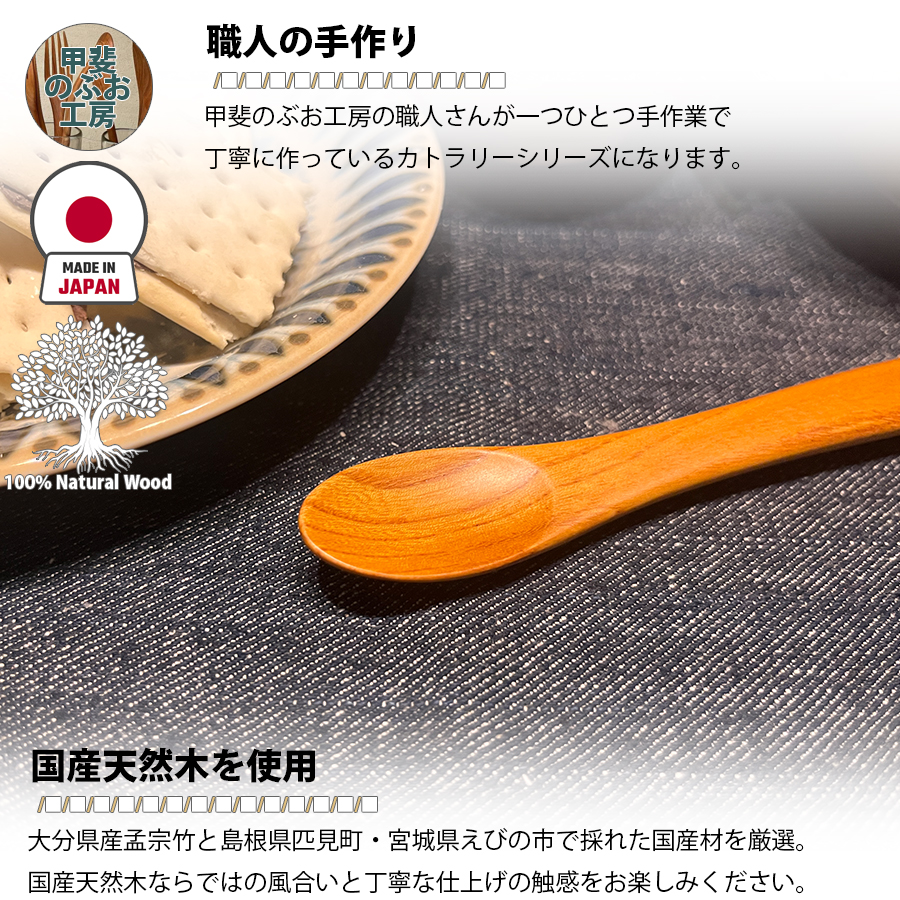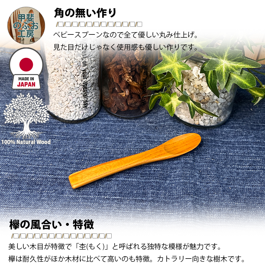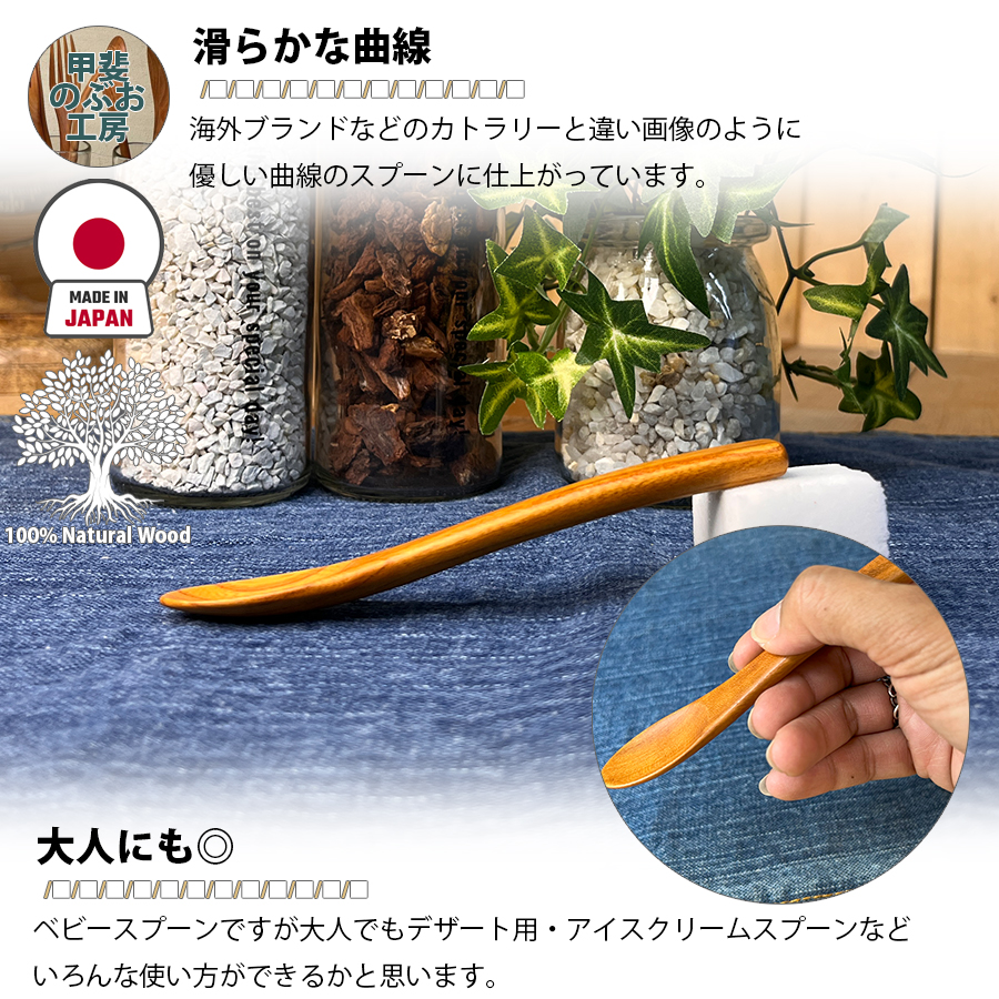【正規販売店】 甲斐のぶお工房 日本製 木製 スプーン 12.5cm ベビースプーン カトラリー 職人 手造り 持ちやすい 天然木 区分N KN-002-KY