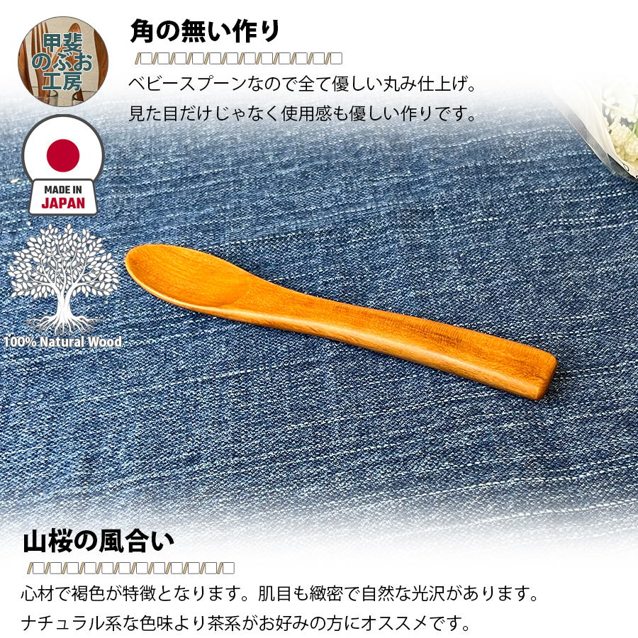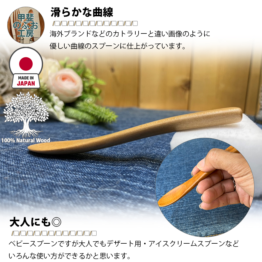 【正規販売店】 甲斐のぶお工房 日本製 木製 スプーン 12.5cm ベビースプーン カトラリー 職人 手造り 持ちやすい 天然木 区分N KN-002-YS