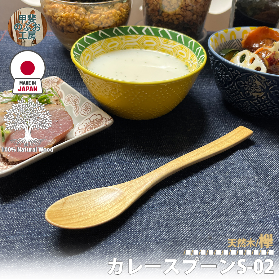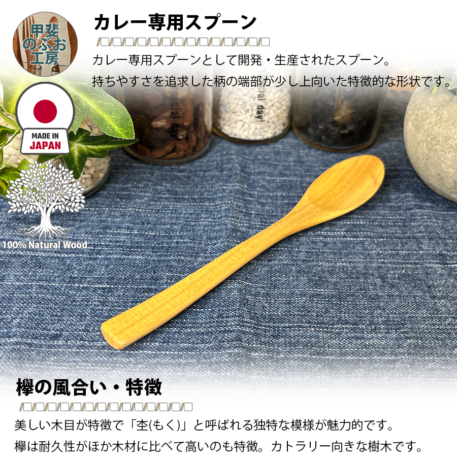 甲斐のぶお工房 日本製 木製 カレースプーン 18cm ケヤキ 天然素材 ウッド食器 キッチン用品 木製食器 工芸品 区分N KN-004-KY
