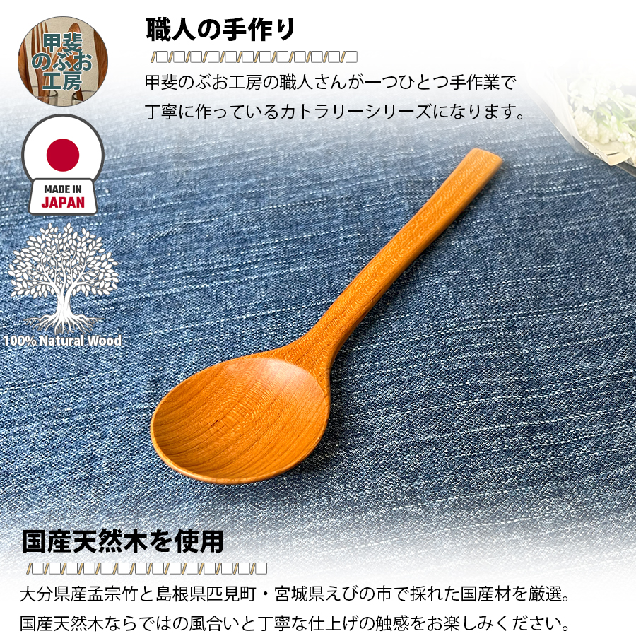 【正規販売店】 甲斐のぶお工房 日本製 木製 スプーン 18cm カレー スープ カトラリー 職人 手造り 持ちやすい 天然木 区分N KN-005-YS
