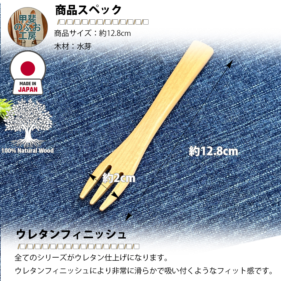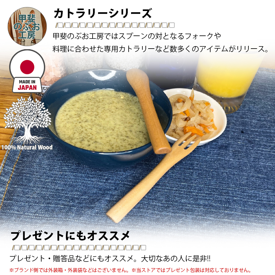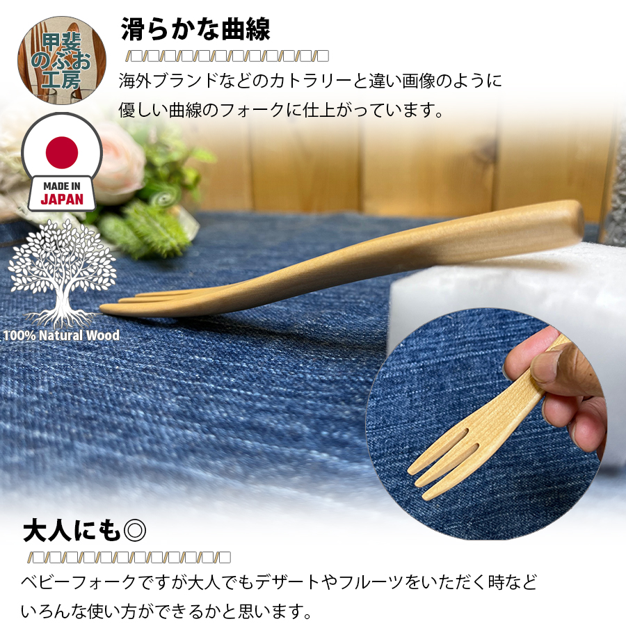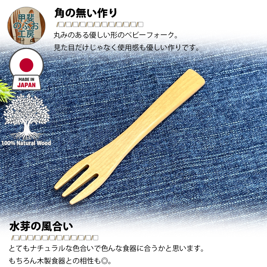 【正規販売店】 甲斐のぶお工房 日本製 木製 フォーク 12.8cm ベビーフォーク カトラリー 職人 手造り 持ちやすい 天然木 優しい 口当たり 区分N KN-006-MZ