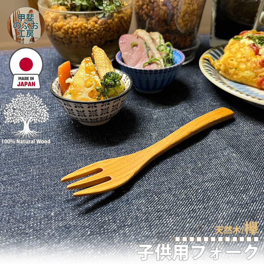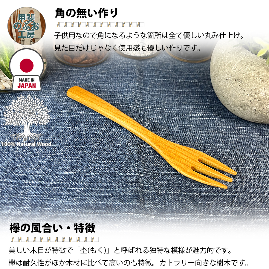 甲斐のぶお工房 日本製 木製 フォーク15cm ケヤキ 天然素材 ウッド食器 キッチン用品 木製食器 工芸品 区分N KN-007-KY