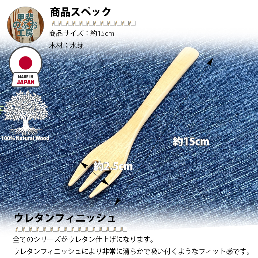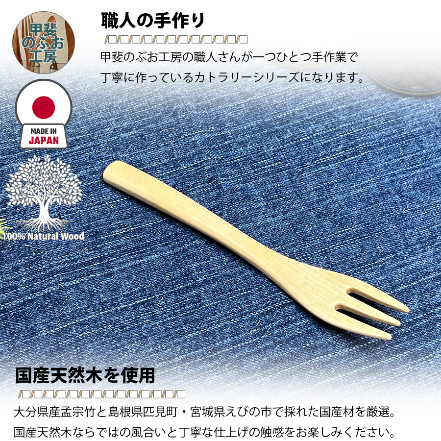 【正規販売店】 甲斐のぶお工房 日本製 木製 フォーク 15cm カフェフォーク カトラリー 職人 手造り 持ちやすい 天然木 優しい 口当たり 区分N KN-007-MZ