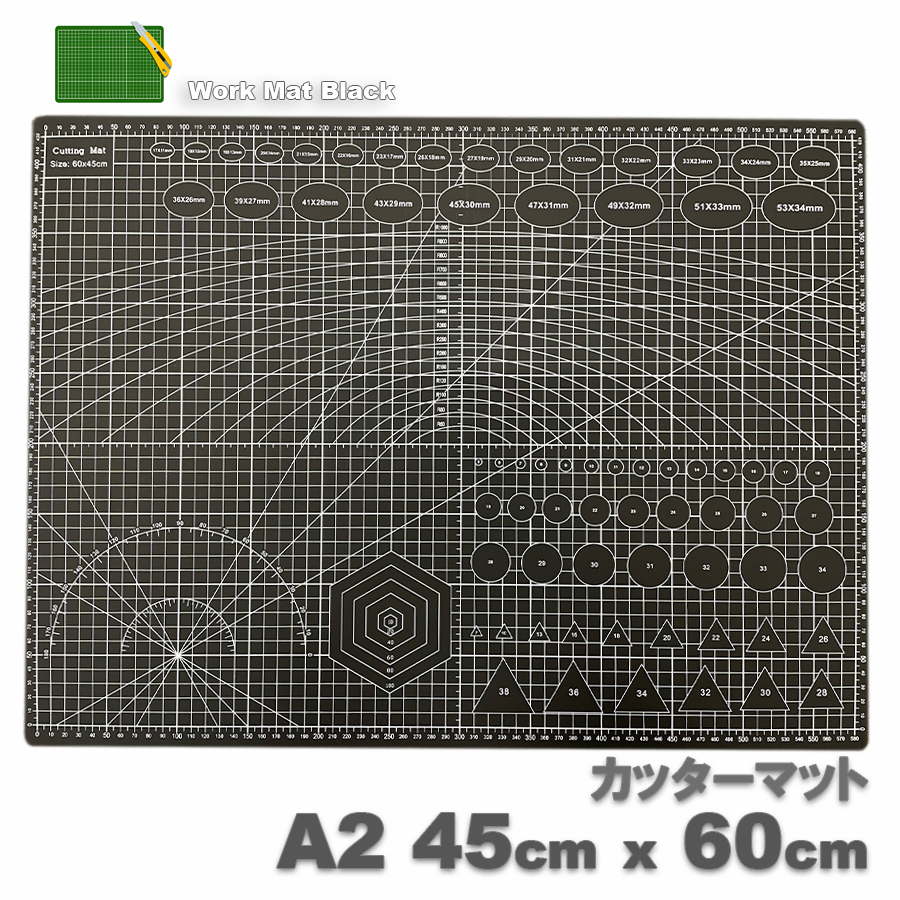 カッターマット A2 リバーシブル 【ブラック】 両面 カッター マット 5mm方眼 カッティングマット 洋裁 作業台 ミシン台 ワークデスク LB-336 区分80S