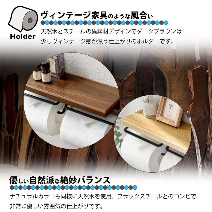 トイレットペーパーホルダー 2連 ダブル トイレ ペーパーホルダー 小物置き トイレラック お手洗い 北欧 モダン アイアン 区分60Y NP-031
