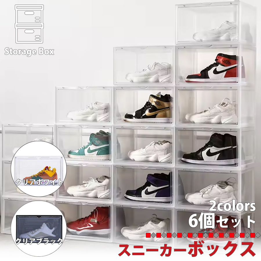 シューズボックス 6個セット クリアケース シューズケース スニーカー ボックス シューズ 靴 横型 収納 くつ 玄関収納 収納ボックス 区分80S NP-034