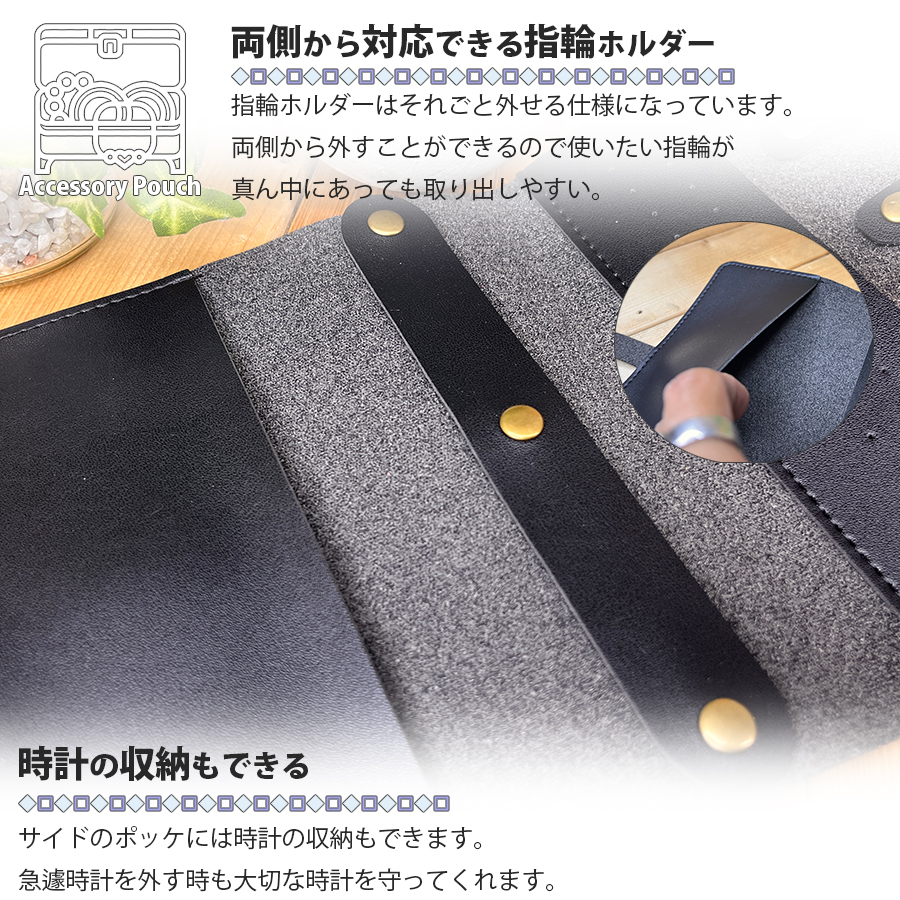 ・腕時計も収納可能。やわらか素材で傷から守ります。