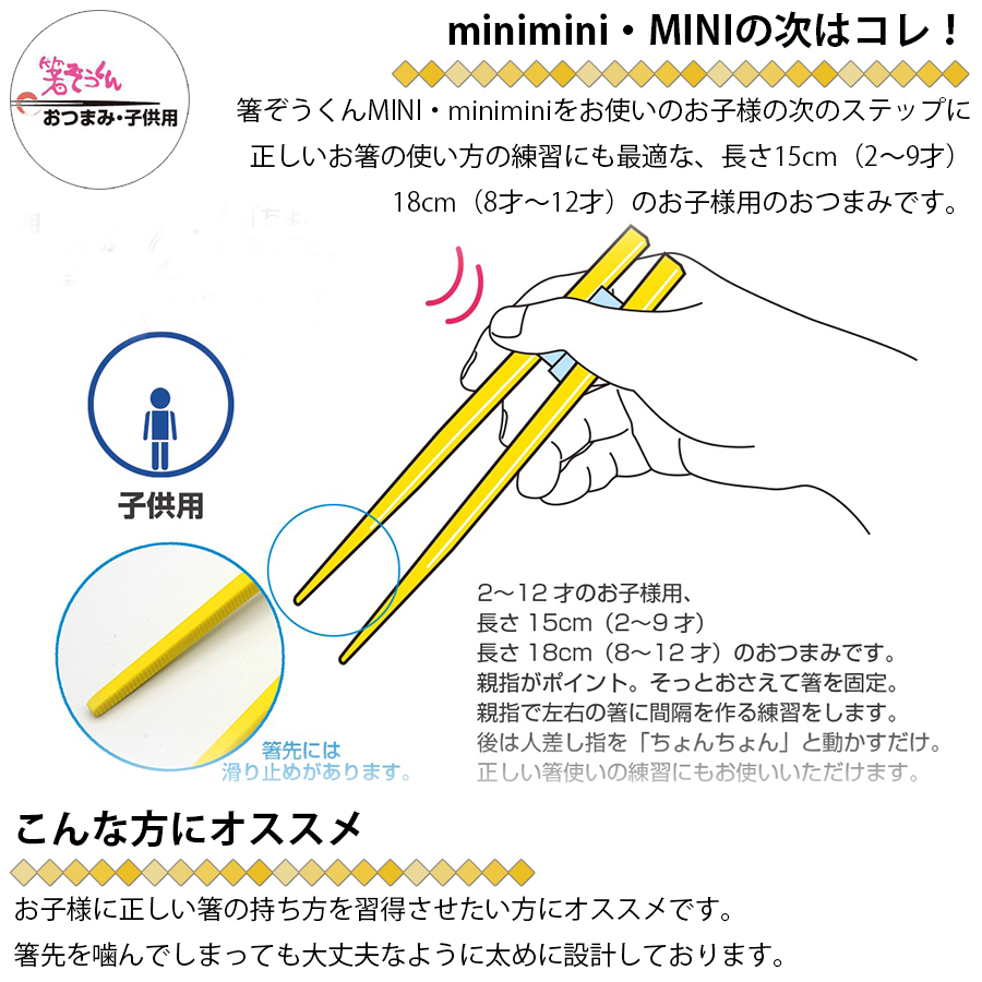 ・正しいお箸の使い方の練習にも最適な、長さ15cm(2-9才)