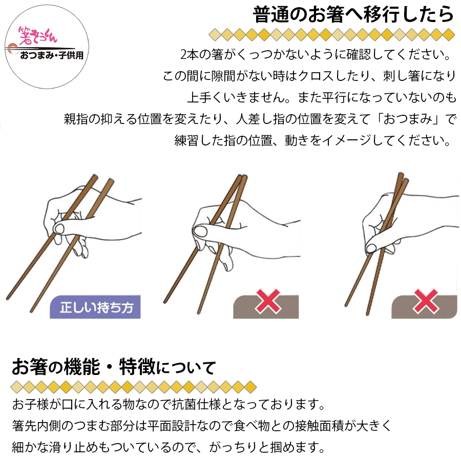 ・正しいお箸の使い方の練習にも最適な、長さ15cm(2-9才)