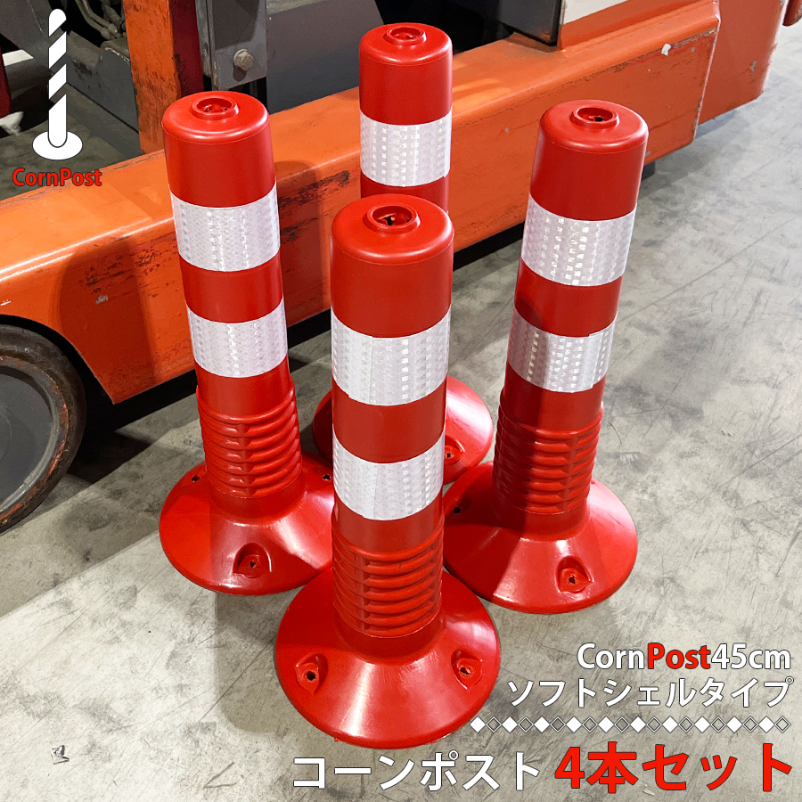 車線分離標 ソフト コーンポスト 45cm 4本 工業資材 カラーコーン ガレージ 倉庫 工場 工事用 区分100S SBH-45-4