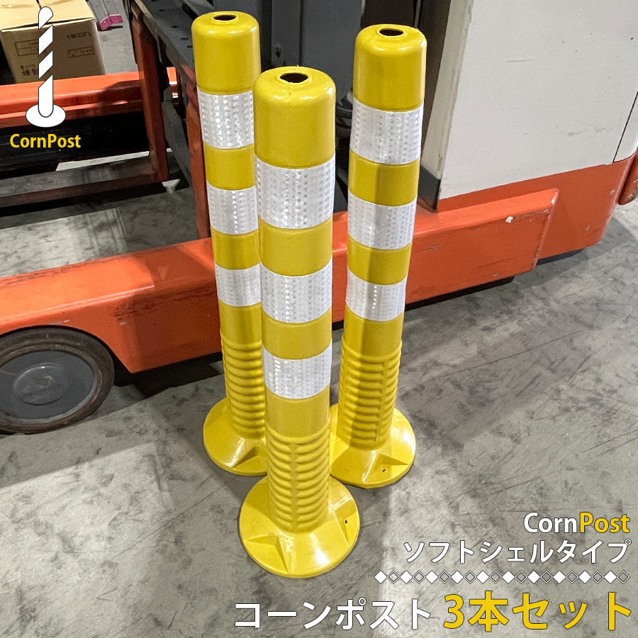 車線分離標 ソフト コーンポスト 75cm 3本 工業資材 カラーコーン ガレージ 倉庫 工場 工事用 区分100S SBH-YE-3