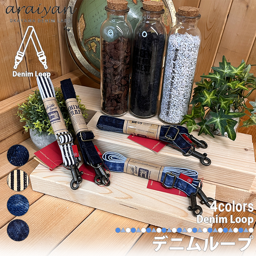 【araiyan】 日本製 アライヤン デニムループ デニムショルダーベルト フック金具 多用途 長さ調節可能 デニム地 ジーンズ素材 岡山デニム AF14010 区分N