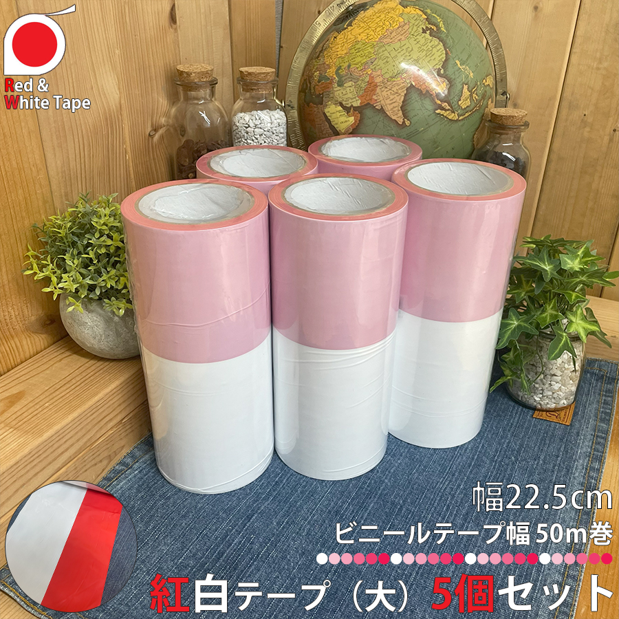 商品名:紅白テープ ビニールテープ 22.5cm×50m巻 5個セット