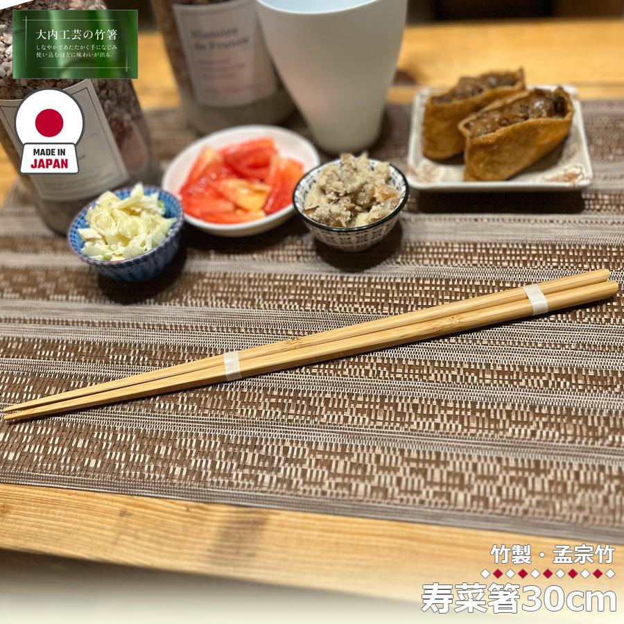 大内工芸 日本製 菜箸 寿菜箸 30cm 菜ばし おはし さいばし 箸 竹製 竹箸 カトラリー 国産 職人 手造り 持ちやすい H303 区分N