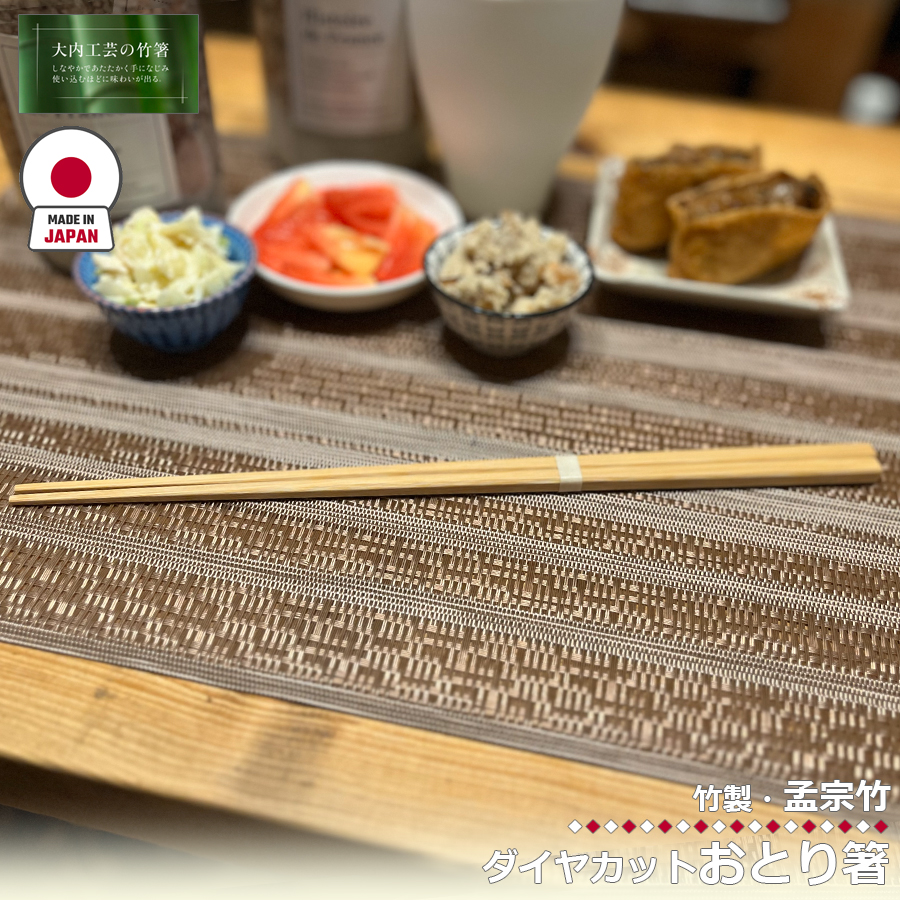 大内工芸 日本製 ダイヤカットおとり箸 28cm 菜箸 菜ばし さいばし おはし 箸 竹製 竹箸 カトラリー 国産 職人 手造り 区分N H313