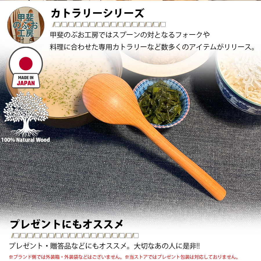【正規販売店】 甲斐のぶお工房 日本製 木製 スプーン 18cm カレー スープ カトラリー 職人 手造り 持ちやすい 天然木 区分N KN-005-YS