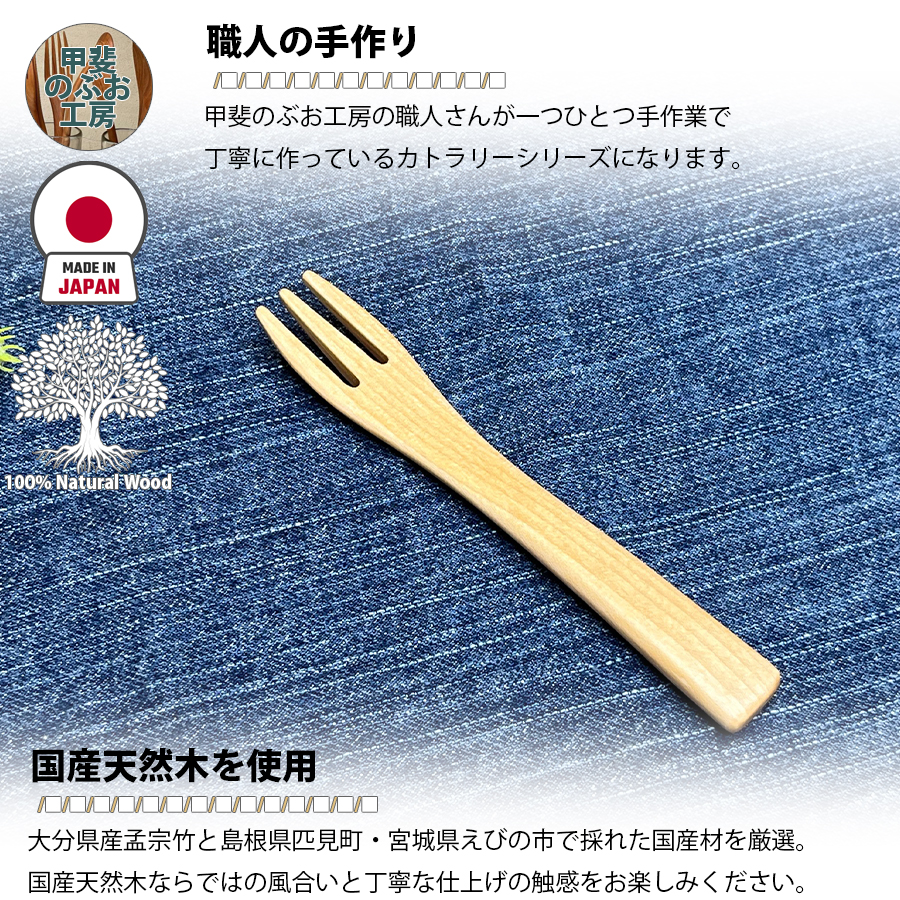 【正規販売店】 甲斐のぶお工房 日本製 木製 フォーク 12.8cm ベビーフォーク カトラリー 職人 手造り 持ちやすい 区分N KN-006-MZ