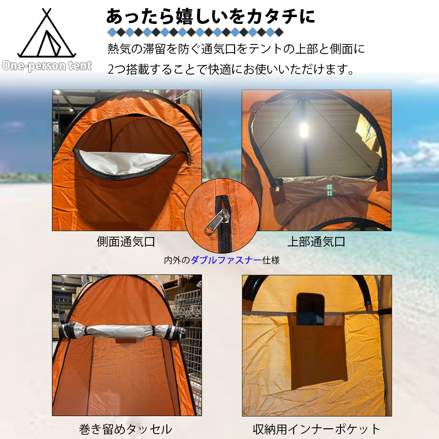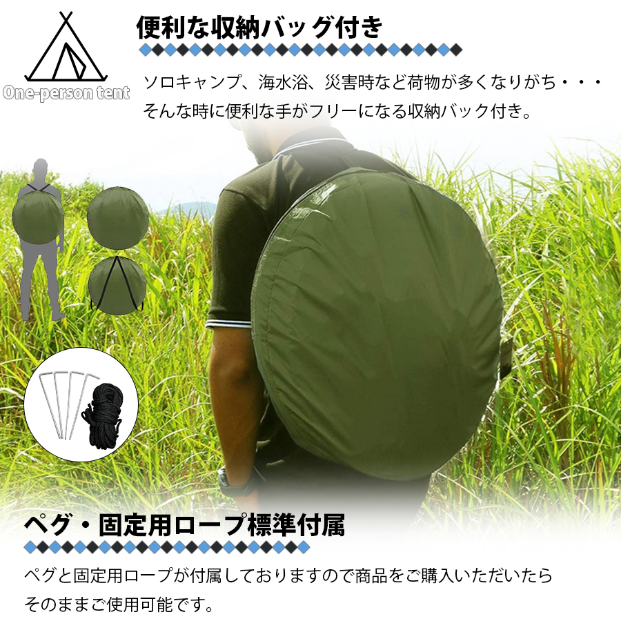 ・面倒な組み立ては一切不要の1人用のテントです。