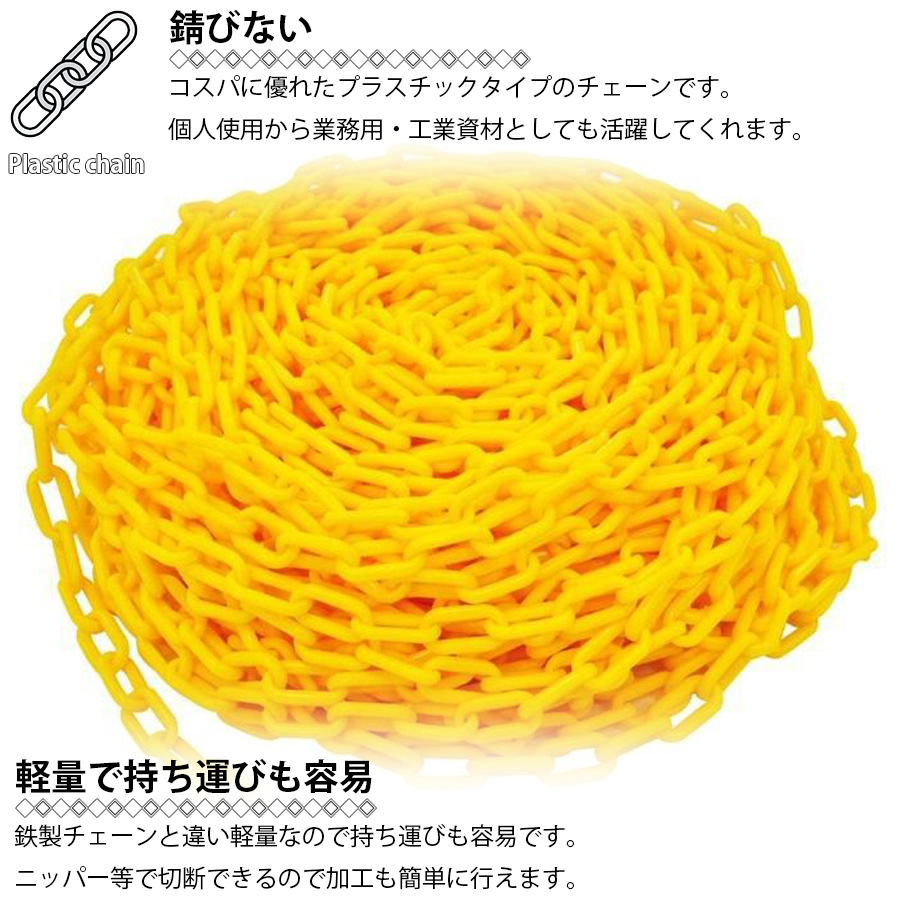 プラスチックチェーン 50m 6mm プラチェーン 工事用チェーン イエロー 2色 プラスチック製 駐車場 禁止 駐車禁止 進入禁止 工事現場 区画管理 LB-302 区分60S
