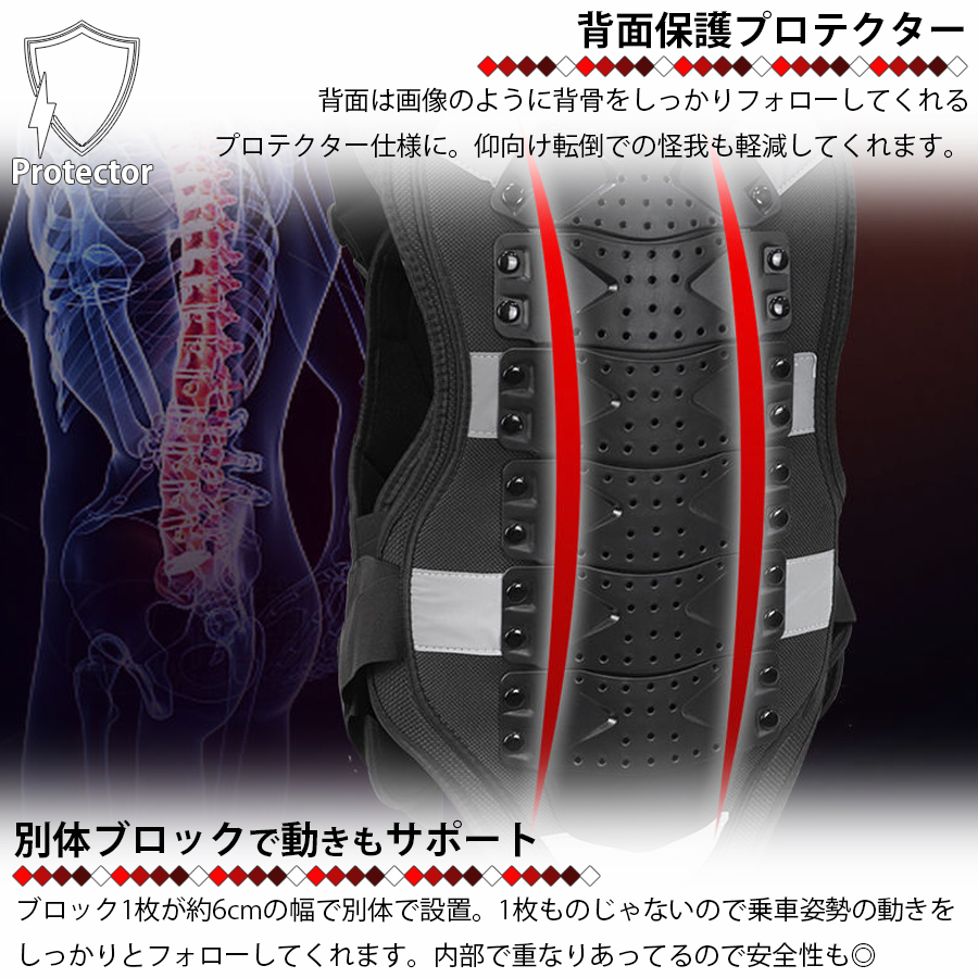 バイク運転時の転倒などから怪我を軽減してくれます。