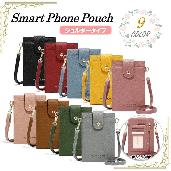 在庫処分品 スマホポーチ ショルダーポーチ 全9色 携帯電話バッグ カードケース 肩掛け 女性 小物 スマホバッグ LB-95 区分C