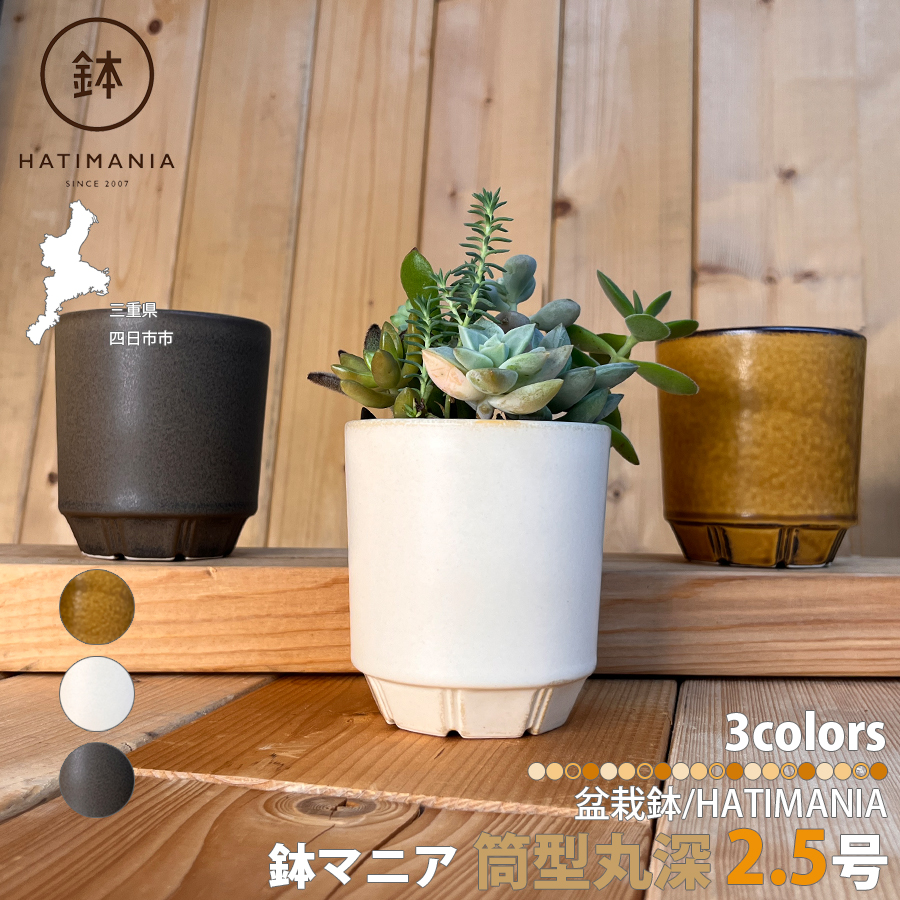 HATIMANIA 鉢マニア 筒型丸深鉢 2.5号 盆栽鉢 日本製 美濃焼 水が抜けやすい 小さい 小サイズ 陶器 森三 伝統工芸 盆栽 多肉植物 サボテン アガベ 苔 区分60Y