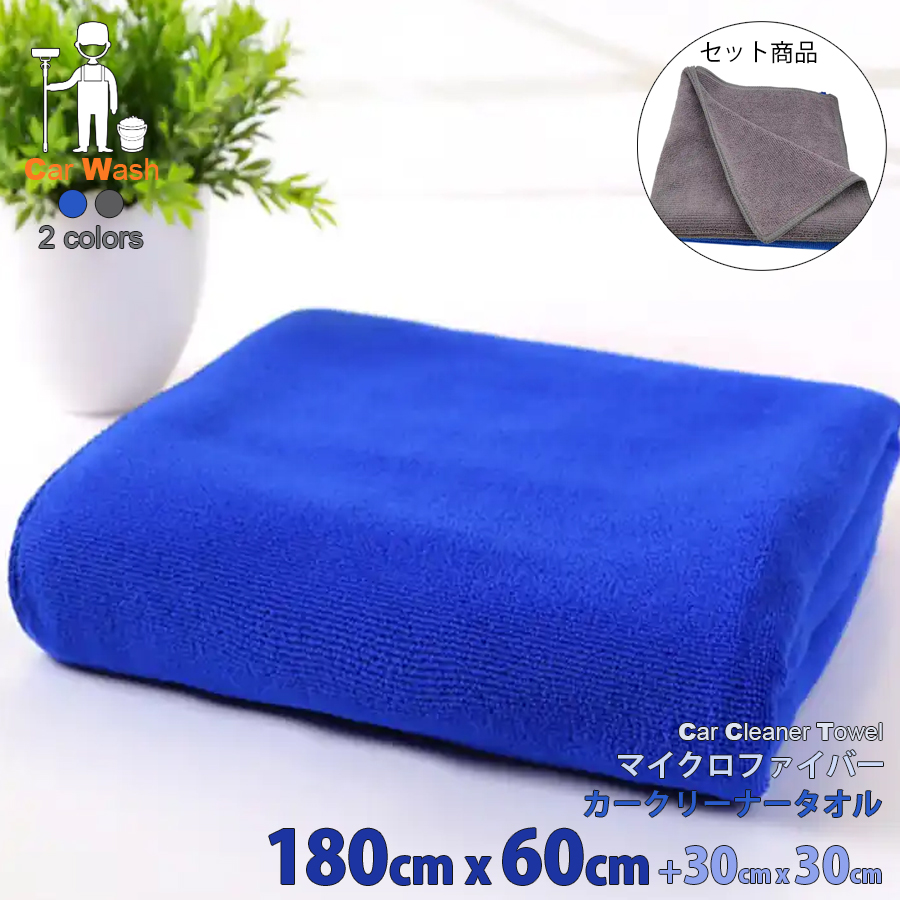 180×60cmと大判サイズなので車の屋根もすんなり拭けます。30×30cmは窓ガラスやサイドミラーなどを拭くのに最適です。