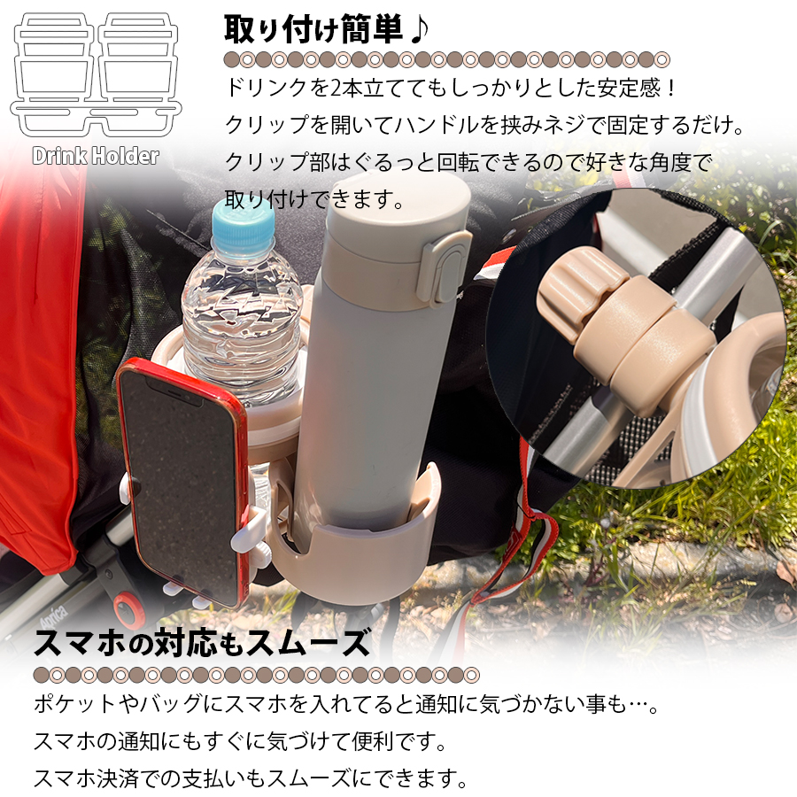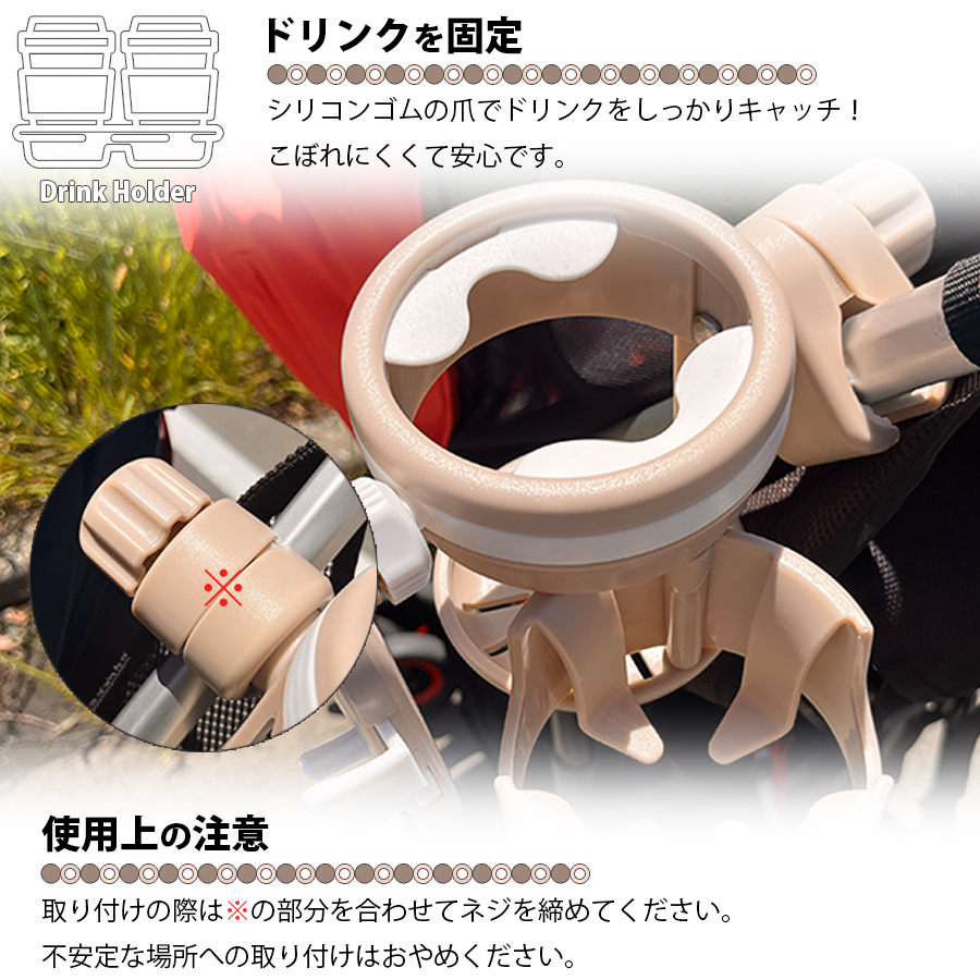 ・ベビーカーに取り付け可能なドリンクホルダー!