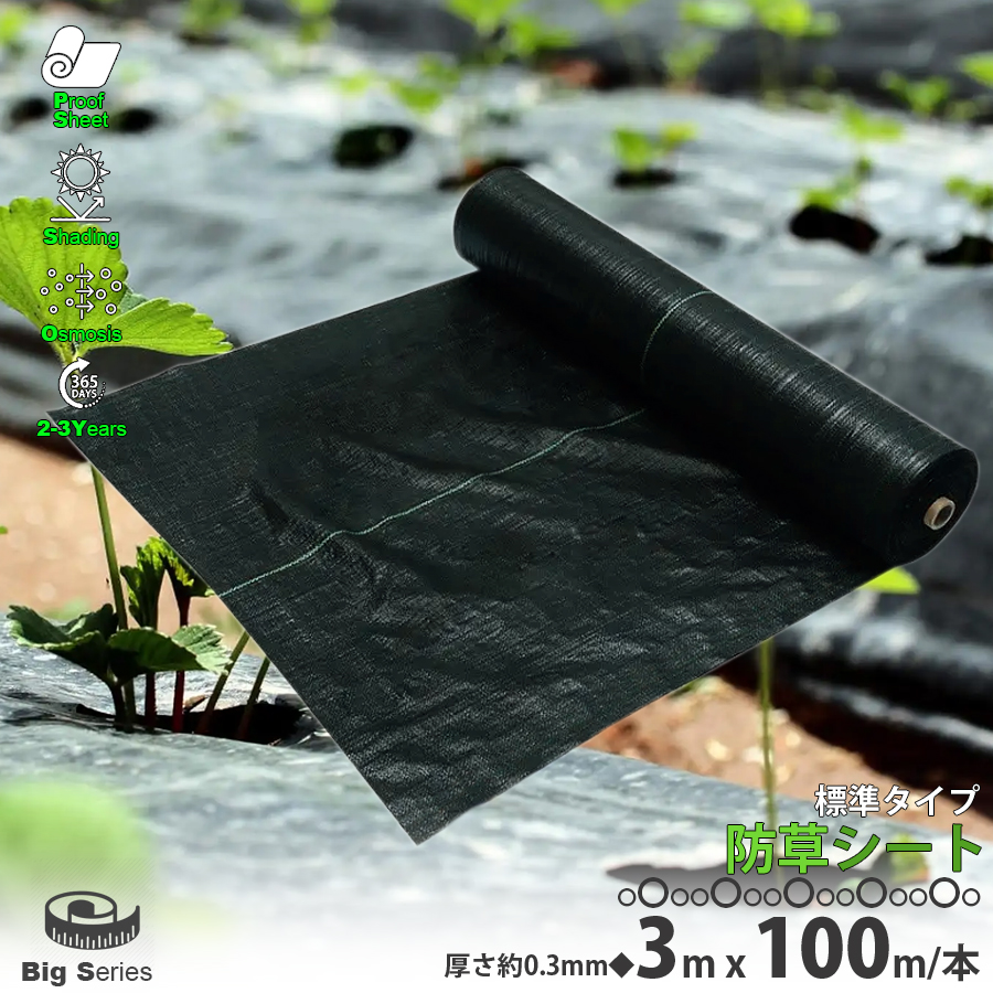 ● 商品名:防草シート 黒 3m×100m 1巻 厚さ0.3mm