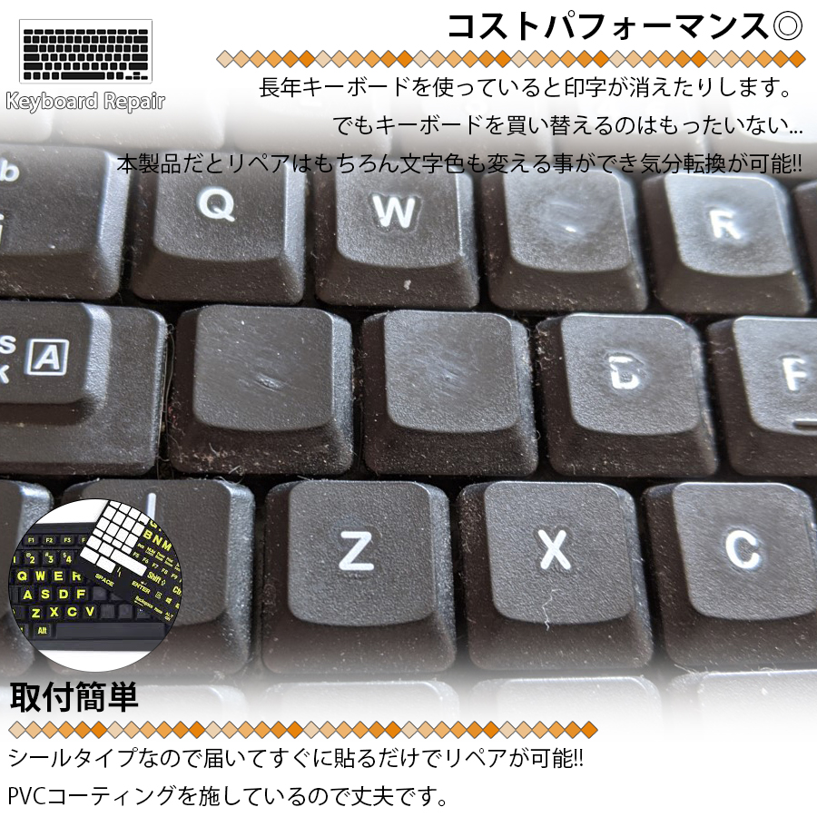 商品名:補修用 PCキーボードシール 太文字タイプ