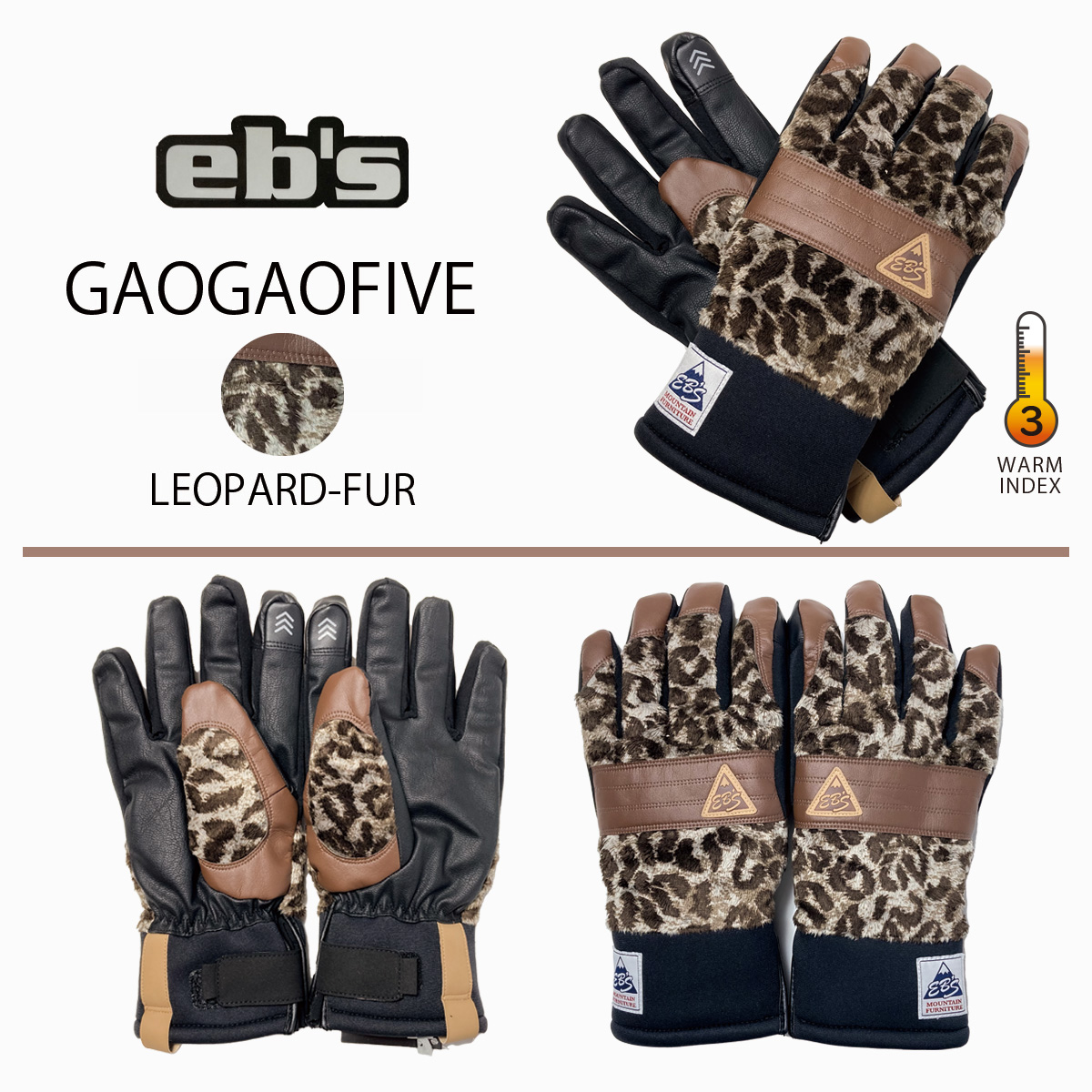 スノーボード 冬 グローブ セール 50%OFF eb's GAO GAO FIVE LEOPARD FUR SKI SNOW BOARD GLOVE エビス