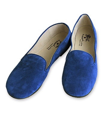 スカートにもパンツにも合うフラットシューズ。季節を問わない素材感です。ベルベットのような、毛足の短い滑らかなスウェード。履き口はパイピングで縁取られています。両足のアウトサイドに水牛マークの刻印があります。中もスウェード、インソール全体にクッション入りで快適な履き心地。ゴムソールは適度な硬さがあります。紙箱と保証書がついています。
