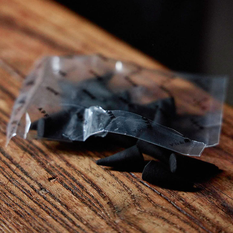 〈黒沈香〉インド古代薬法書である「スシュルータ」には、沈香の薫煙で身体に賦香することや、鎮痛剤として焚くとある。異国情緒ただようアダルトなオリエンタル・ウッディーの香り。