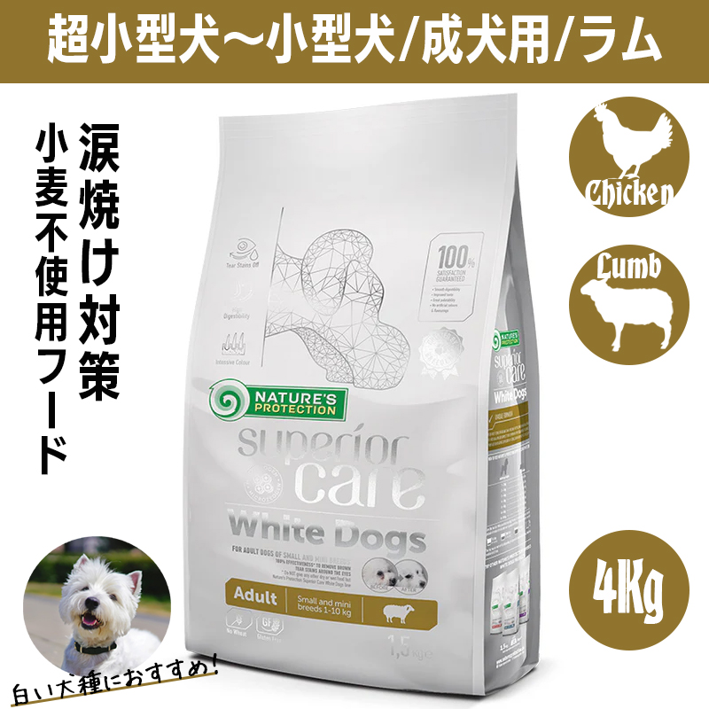 ドッグフード ネイチャーズプロテクション ホワイトドッグ ラム アダルト 4kg 涙やけ アレルギー対策 グルテンフリー 白い被毛 の小型犬に