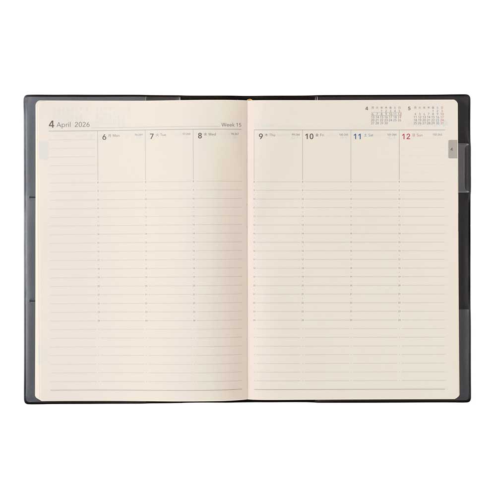 予定もメモも日記欄で完結。薄型・シンプルなA5サイズのウィークリーダイアリー■新商品です。